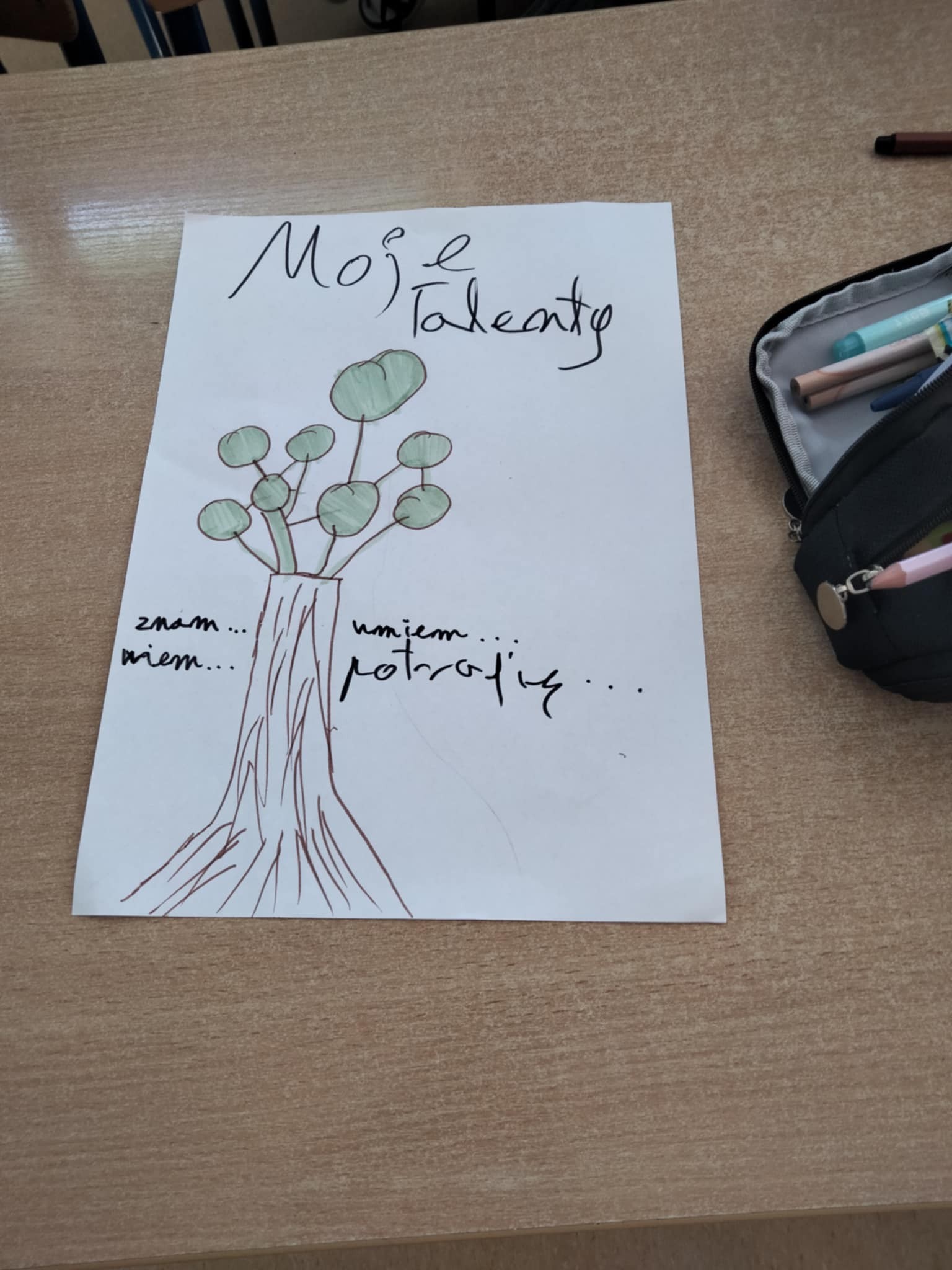 Na zajęciach z panią psycholog pt. „Moje talenty” uczniowie mieli okazję odkrywać i nazwać swoje mocne strony oraz umiejętności. Do pracy wykorzystane zostało drzewo talentów. Dzięki tej aktywności uczniowie nie tylko lepiej poznali samych siebie, ale też zauważyli, że każdy z Nas ma wyjątkowe zdolności.